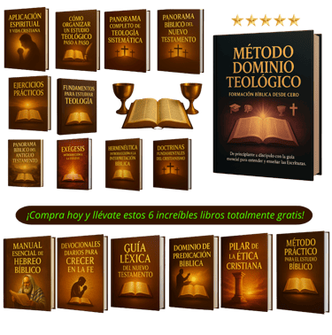 Al adquirir Método Dominio Teológico hoy, recibirás totalmente GRATIS estos 6 regalos exclusivos que complementarán tu estudio y crecimiento espiritual: